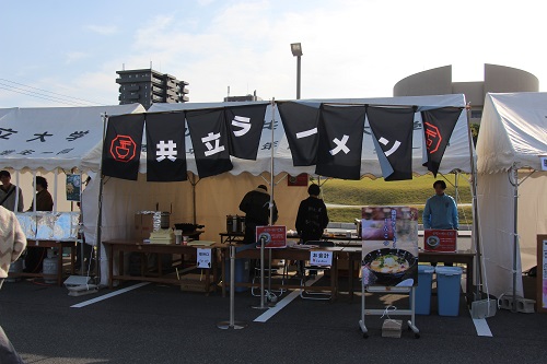 その中でも最初に開店準備が整った「事業創造演習たこ焼き・共立店」でたこ焼きを買いました。美味しいたこ焼きでした。このお店では学生と一緒に堂野崎先生も開店準備を行っていましたよ。
