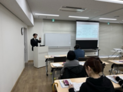 3日目(1/24)は、経済学部の佐々木さんが、2分野のリスク管理である生命保険や損害保険の仕組み、保険制度と税金について具体的事例を含め概説しました。続いて経済学部の中島さんが、FPの5分野の不動産である、不動産の見方・取引、建築基準法、農地法、不動産の取得・保有と税金について概説しました。また、経済学部の安心院さんが、FPの受講者サポートとして参加しました。